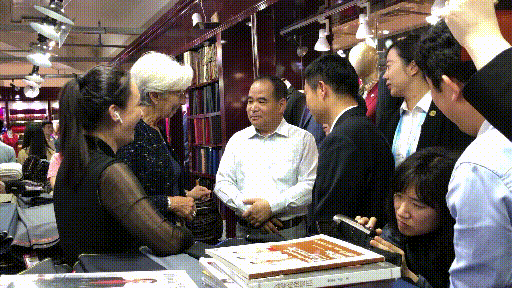 合影后,拉加德女士与秀水街董事长、总经理像老朋友一样相谈甚欢。